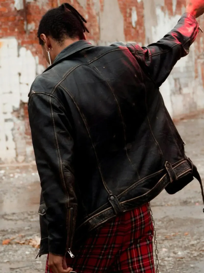 Key design elements set the Some Black Leather Jacket II apart. The robust front zipper closure adds to the jacket’s sleek appearance and ensures a secure fit. The asymmetrical zip adds a contemporary twist, giving the jacket a unique and stylish edge.