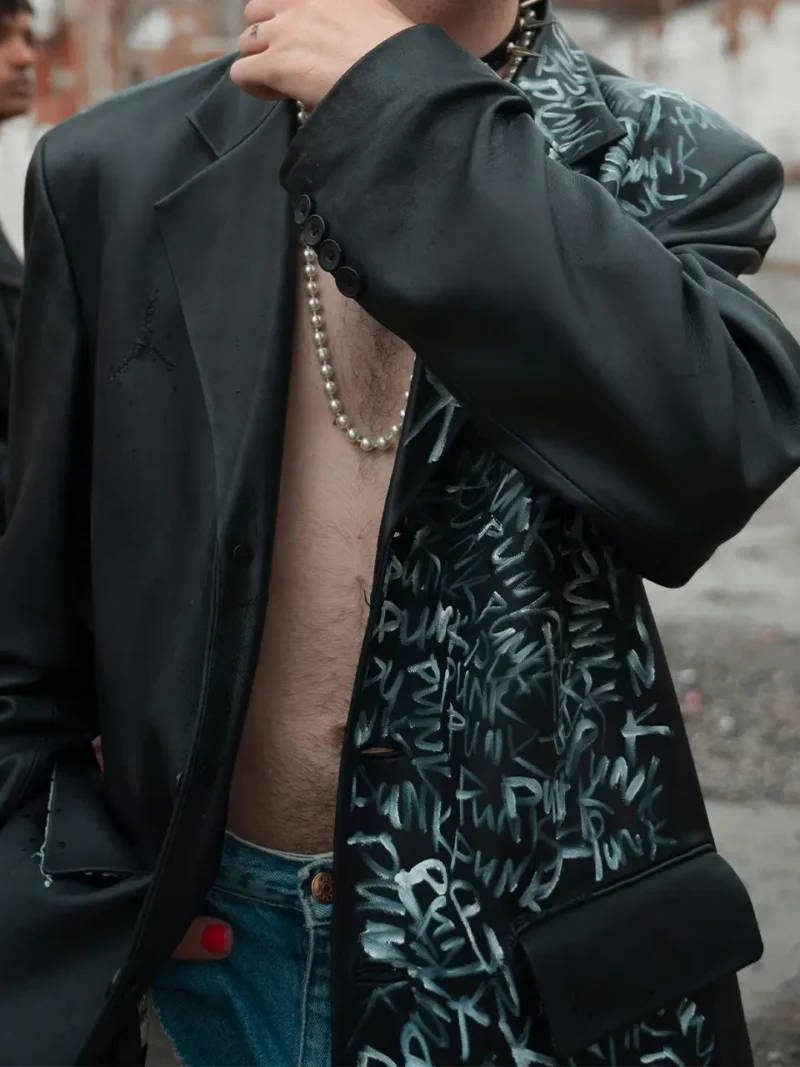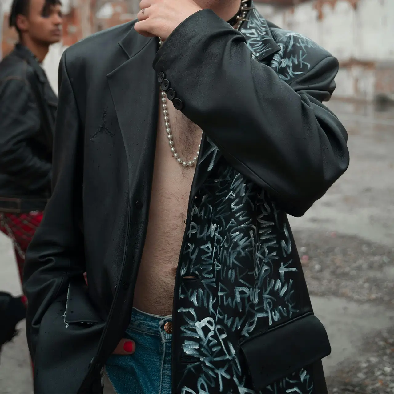 The Some Black Leather Jacket is made from top-grade genuine leather, ensuring durability and a luxurious feel. The rich black color is classic and versatile, allowing you to pair it with virtually any outfit. The leather is meticulously treated to achieve a smooth, polished finish that only improves with age, developing a unique patina that adds character and distinction over time.